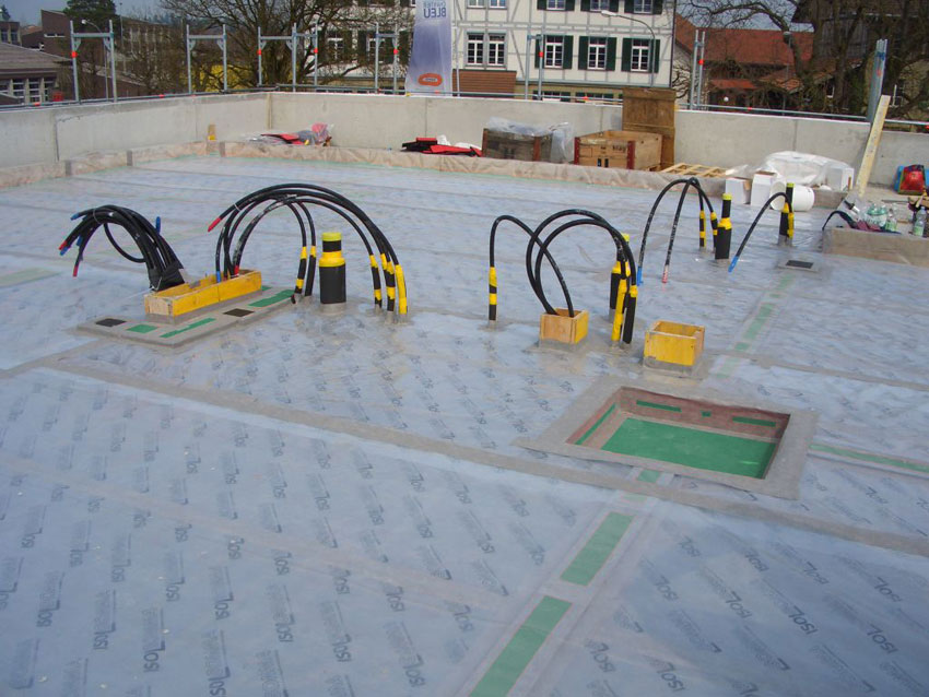 Le centre commercial Coop a été construit dans la ville de Jegenstorf, dans ce projet a été appliqué un système d’isolation entre la zone commerciale et les habitations superposées, constitué de GREI 5 et MEGAMAT 25/800 appliqués sur le même plan d’appui sur différentes zones de charge.