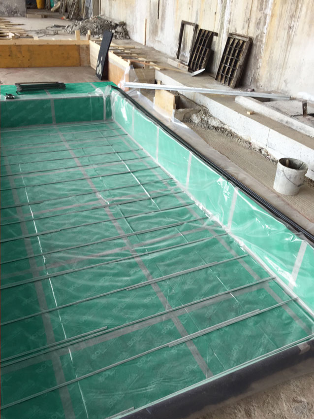 Pour limiter l’amplification des vibrations provenant de l’installation, due à l’utilisation de structures en béton, on a utilisé une solution antivibratoire avec l’application de MEGAMAT 25/950.